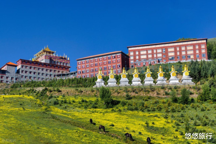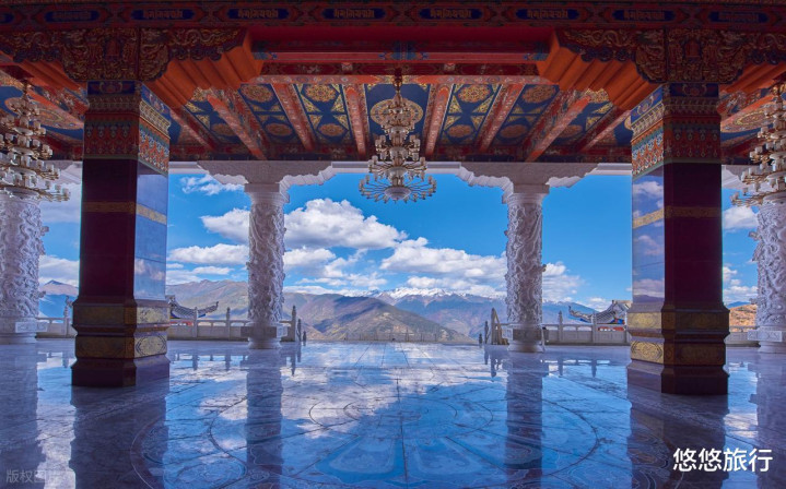 在海拔3500米雪山环抱中,始建于1414年的大藏寺藏着明代壁画,布满了3座山坡。昌列寺殿宇强大,设置工艺细密。从殿宇前看雪山有种云顶玉阙的嗅觉。