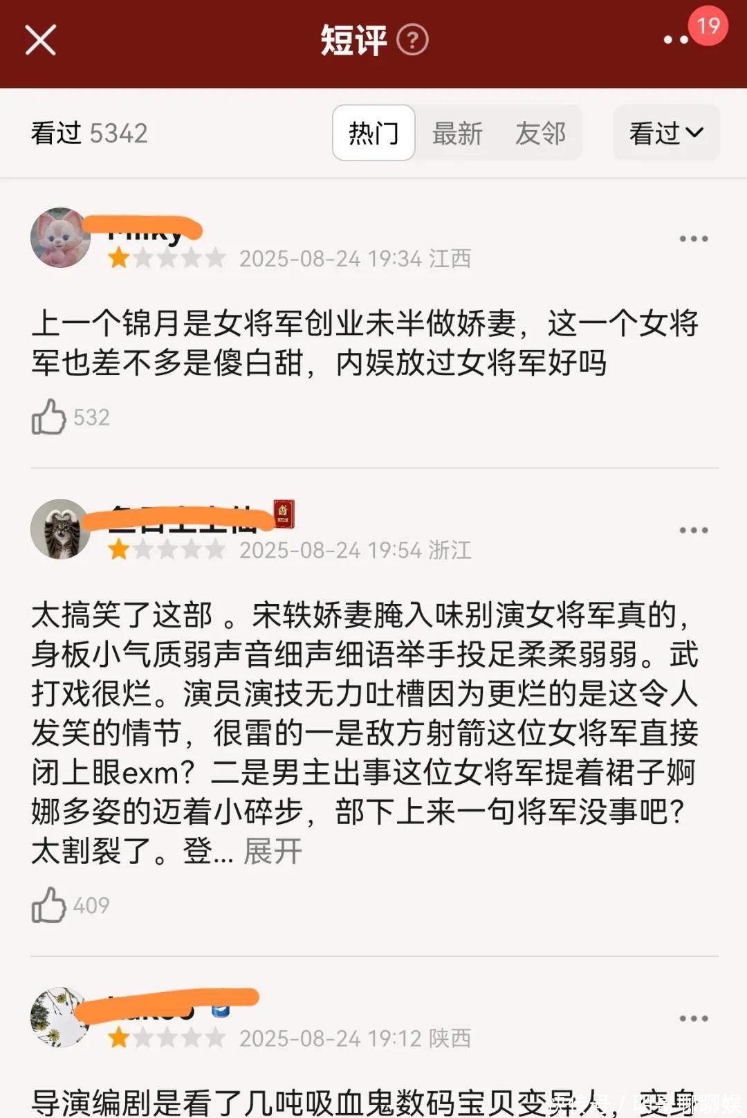 逛了一圈豆瓣点评,差评大多逼近在了宋轶扮演的女将军情状上,吐槽她太瘦太柔涓滴莫得女将军的范儿。