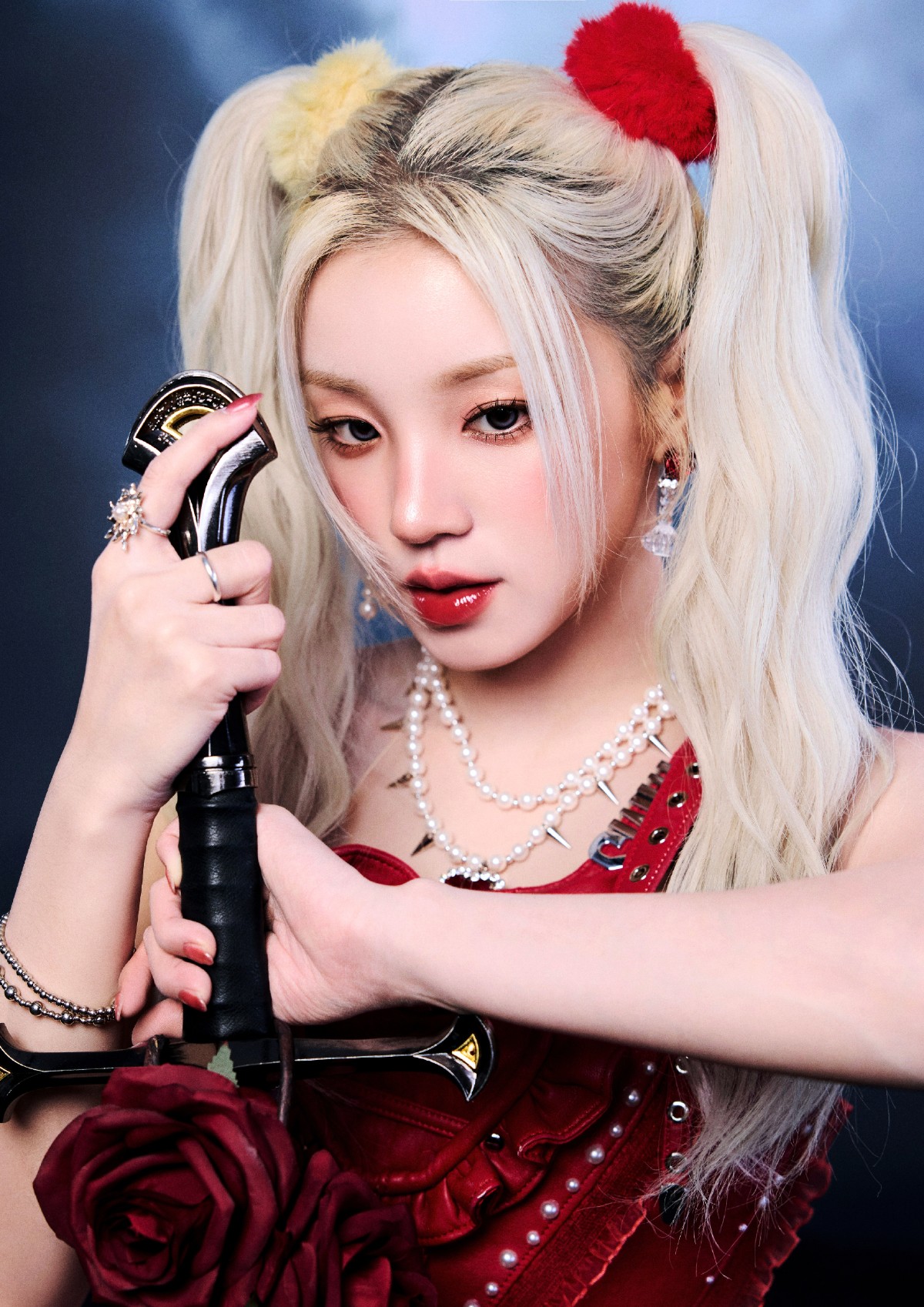 宋雨琦的甜酷,是韩系舞台风与鬼马甜妹的火热和会。一头双色双马尾俏皮又吸睛,红色系穿搭缀满金属铆钉与蕾丝碎边,手持玫瑰藏匿的长剑,活脱脱一个从暗黑童话里走出来的甜酷战士。她的甜是青娥感的直白抒发,双马尾、珍珠链、甜系红唇,把元气值拉满;而她的酷则是舞台上的野性开释,韩团锤真金不怕火出的跳舞张力、极具穿透力的嗓音,还有对夸张造型的垄断力,让她在“甜”的基底上,迸发出“酷”的炸裂感。这种甜辣交汇的作风,让她在偶像赛说念里相配隆起,就像一颗裹着糖衣的辣味硬糖,越品越有眉目。