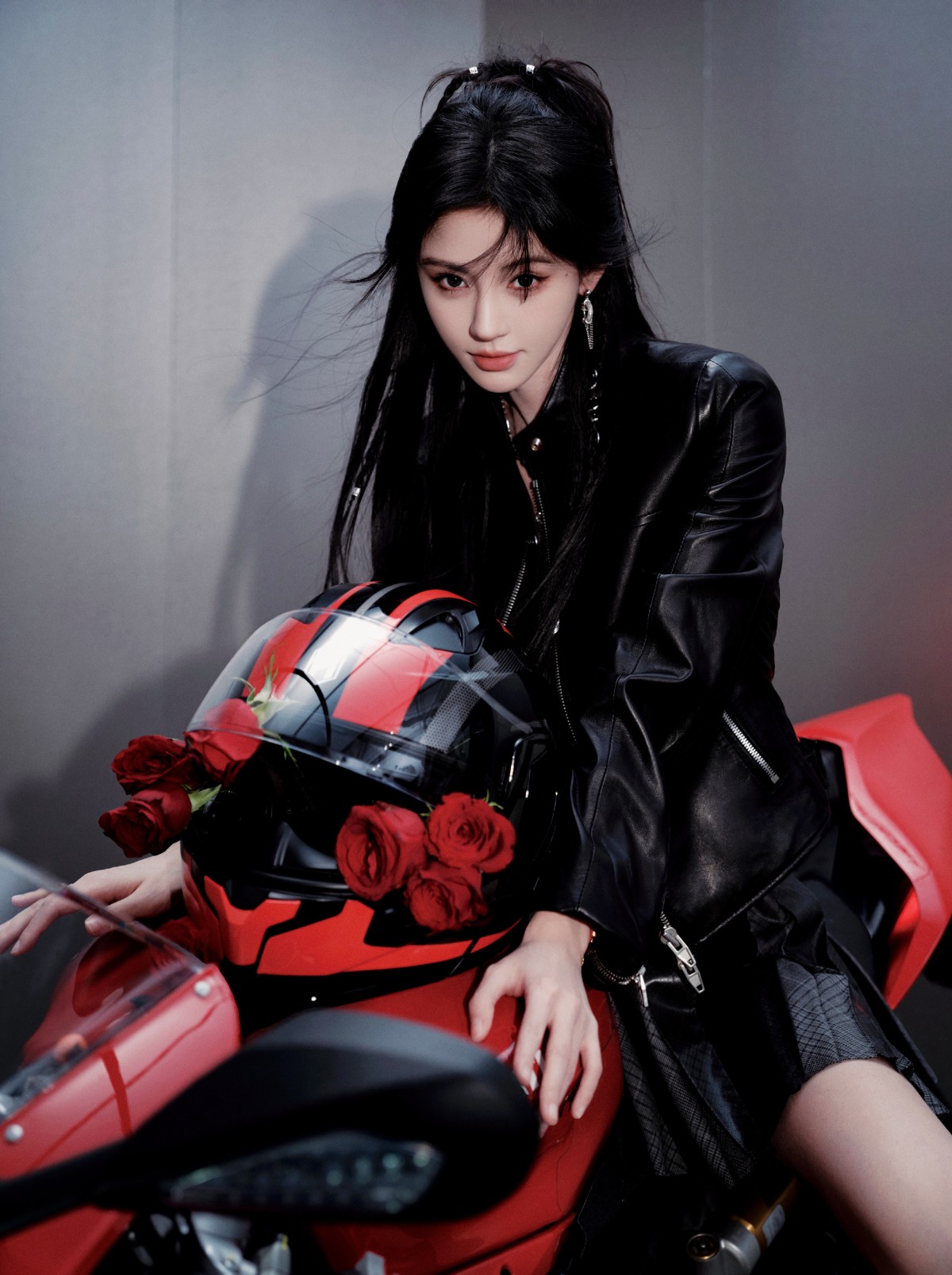 鞠婧祎的甜酷,是把“冷感甜辣”刻进了执行里。零丁玄色皮衣搭配红色机车,头盔上点缀的红玫瑰娇艳欲滴,她的长发被风扬起几缕,认识却带着几分不羁的横蛮——这种“甜妹骑重机”的画面,自己就充满了戏剧感。她的酷从不刻意扮“糙”,而是用精致的妆造和阴凉的气质,去中庸机车、皮衣的硬朗,就像给重金属摇滚加了一勺蜜,甜得有棱角,酷得有温度。不管是舞台上的劲歌热舞,还是写照里的飒爽造型,她王人能把“甜”的柔好意思和“酷”的矛头均衡得恰到克己,让你一眼记取这个又甜又A的机车青娥。