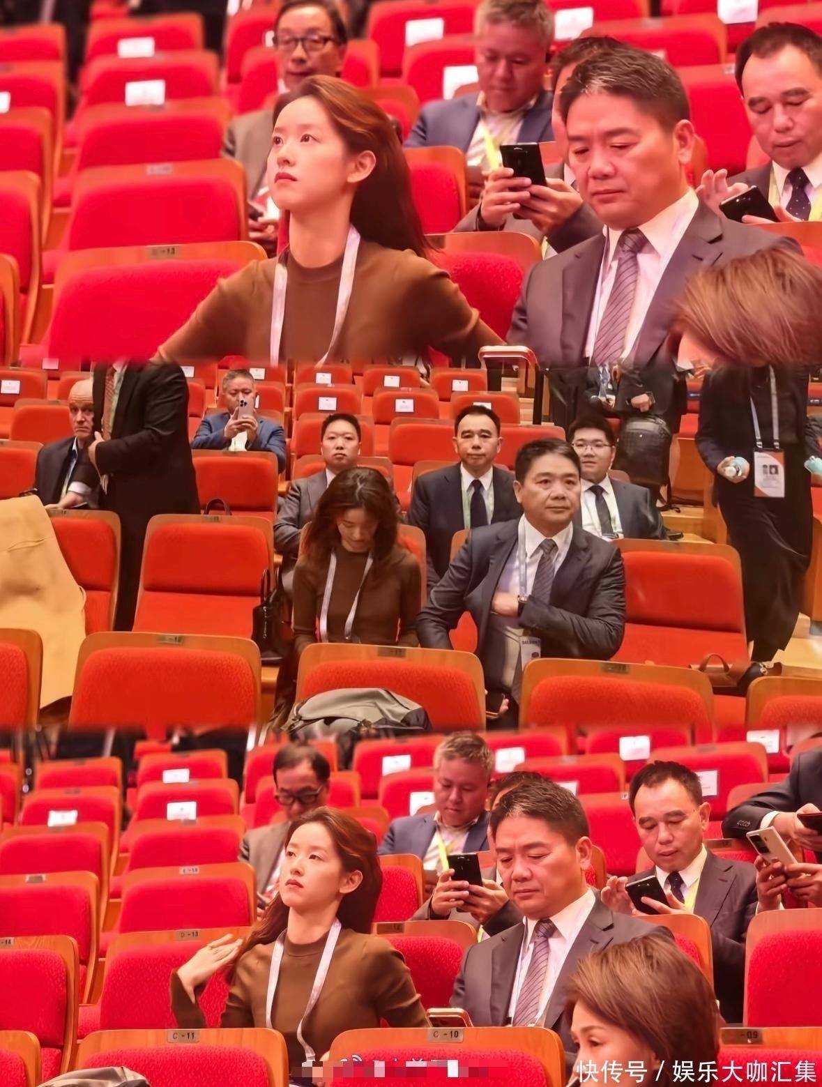 22. 会议时间几张抓拍照不测走红:画面中刘强东垂头稽察手机,表情略显凝重;而身旁的章泽天则风范把稳,表情减轻,气质出众。