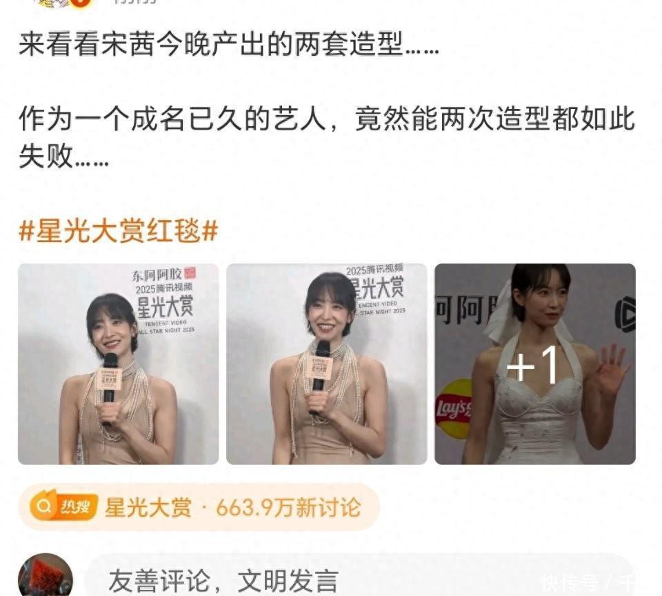 宋茜今天星光大赏的2套造型皆被网友热议了,宋茜是得罪造型师了吗?行为一个成名已久的艺东说念主欧洲杯体育,居然能两次造型皆如斯失败……