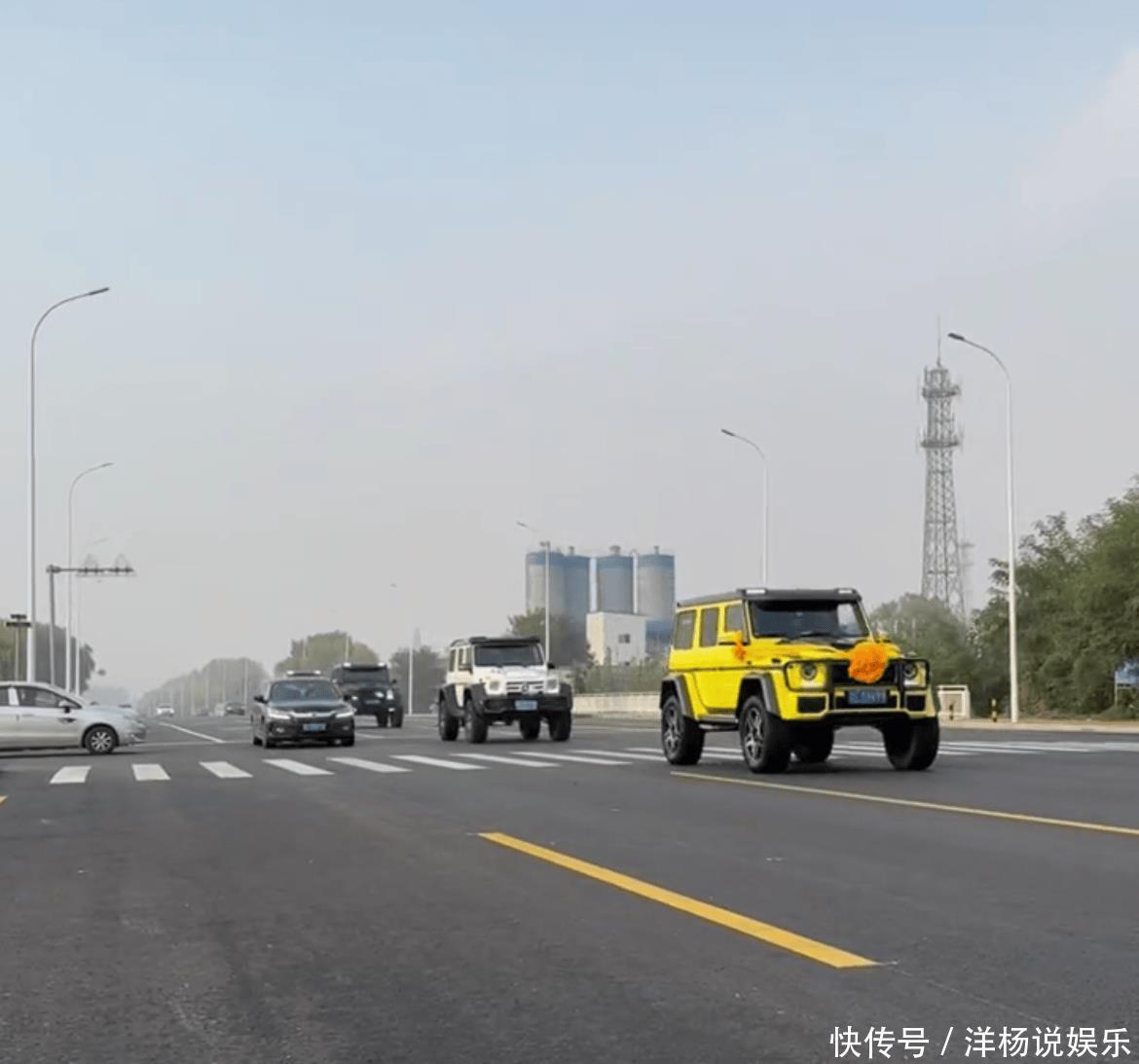 从曝光的画面中不丢丑出,一整排的豪车特殊有排面,第一部分豪车全部是大G,头车是黄色的大G,紧接着等于白色、玄色、黄色。