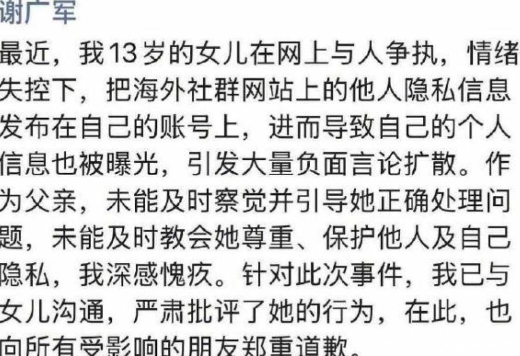 而身为百度副总裁的父亲眼看我方饭碗不保,于是便在一又友圈发布了一则谈歉声明,
