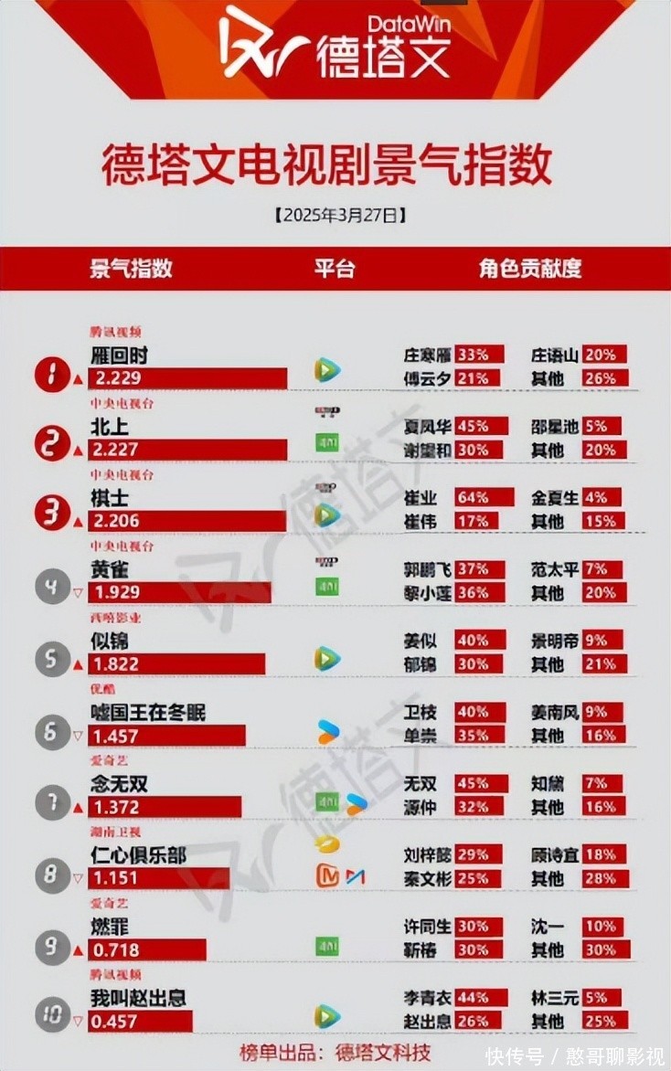 以下10部电视剧是最近收集上的热剧,一样追剧的一又友无东谈主不知,无东谈主不晓,且看前10位流量剧的魔力!