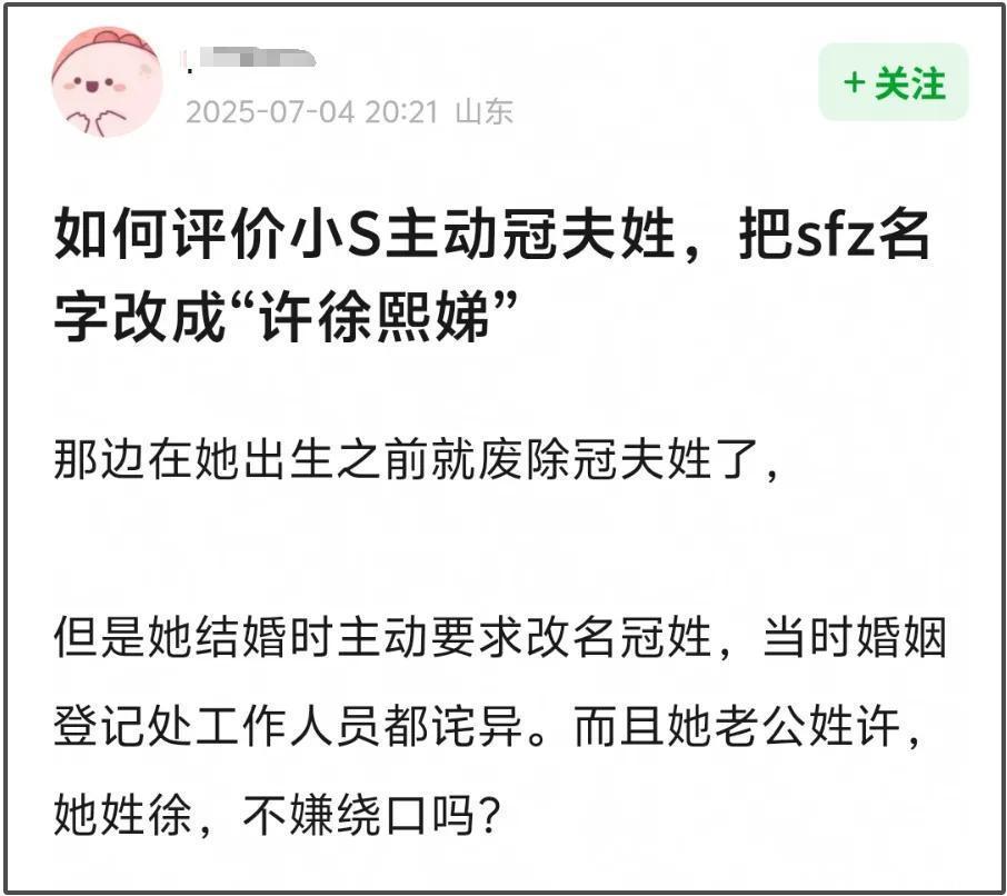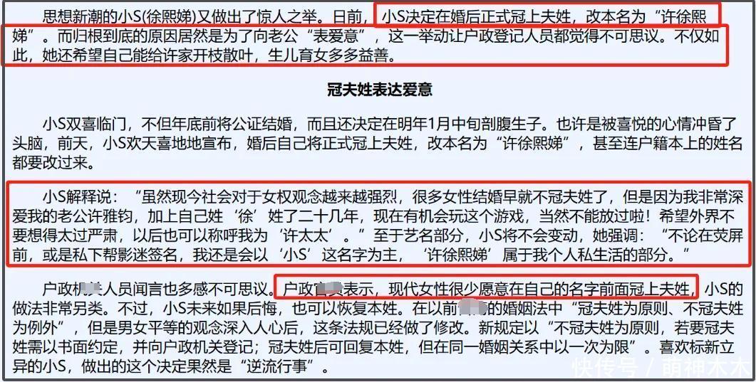 不知谈从什么时候运行,小S接替大S成了披露女性的代表,如今网友扒出她一授室就冠了夫姓,亦然澈底撕下了小S临了一点遮羞布。