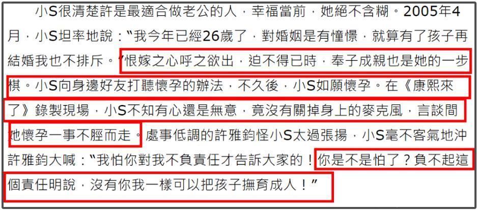 各样迹象自满,小S概况嫁进许家,全靠姿态够低,一早就把我方放在最为卑微的位置,不光是只身先孕,也不单是是冠夫姓,还有发誓为老许家生个带把儿的。