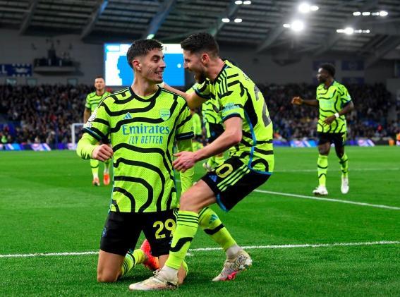 4月7日欧洲杯体育,英超第32轮,阿森纳客场3-0校服布莱顿,暂时登顶英超。